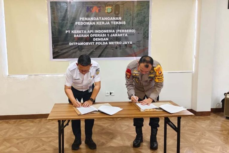 Kilastoday.com, Jakarta – PT Kereta Api Indonesia (Persero) Daerah Operasi 1 Jakarta bersama Direktorat Pengamanan Objek Vital (Ditpamobvit) Polda Metro Jaya melaksanakan penandatanganan Pedoman Kerja Teknis (PKT) Jasa Pengamanan Stasiun Gambir, pada Rabu (1/10) bertempat di Gedung Laju Praspero Polda Metro Jaya.