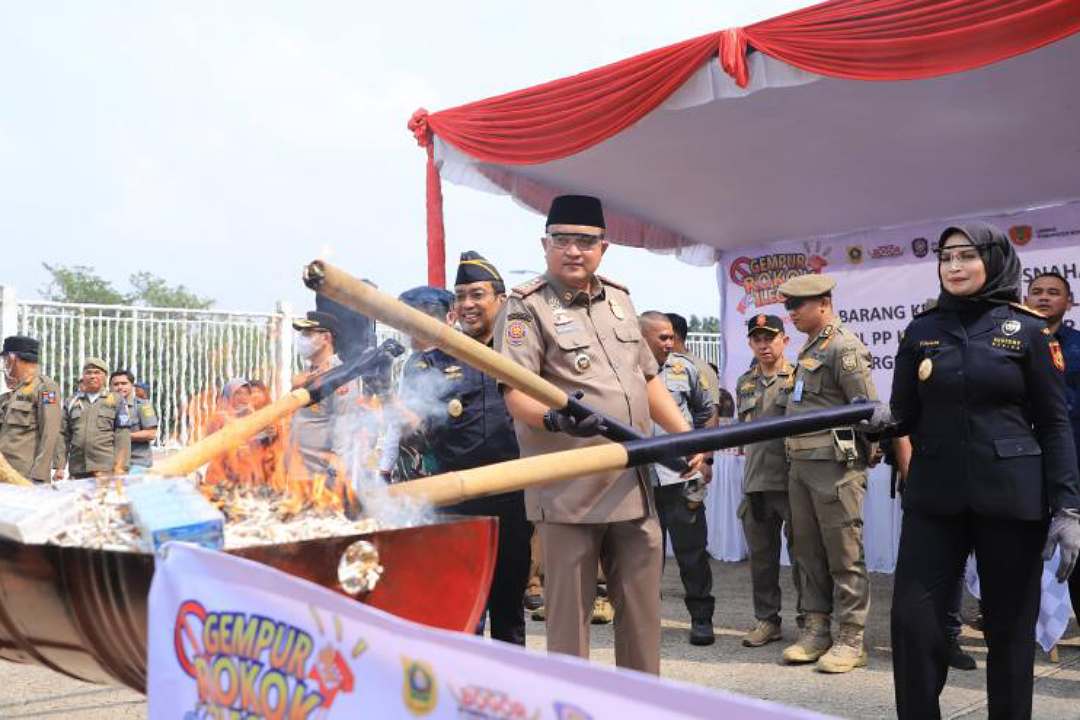 Kilastoday.com, Jawa Barat – Bupati Bogor, Rudy Susmanto bersama Kepala Kantor Wilayah Ditjen Bea Cukai Jawa Barat, Finari Manan dan jajaran Forkopimda Kabupaten Bogor memusnahkan lebih dari 1,8 juta batang rokok ilegal dan sejumlah minuman keras (miras) hasil penindakan.